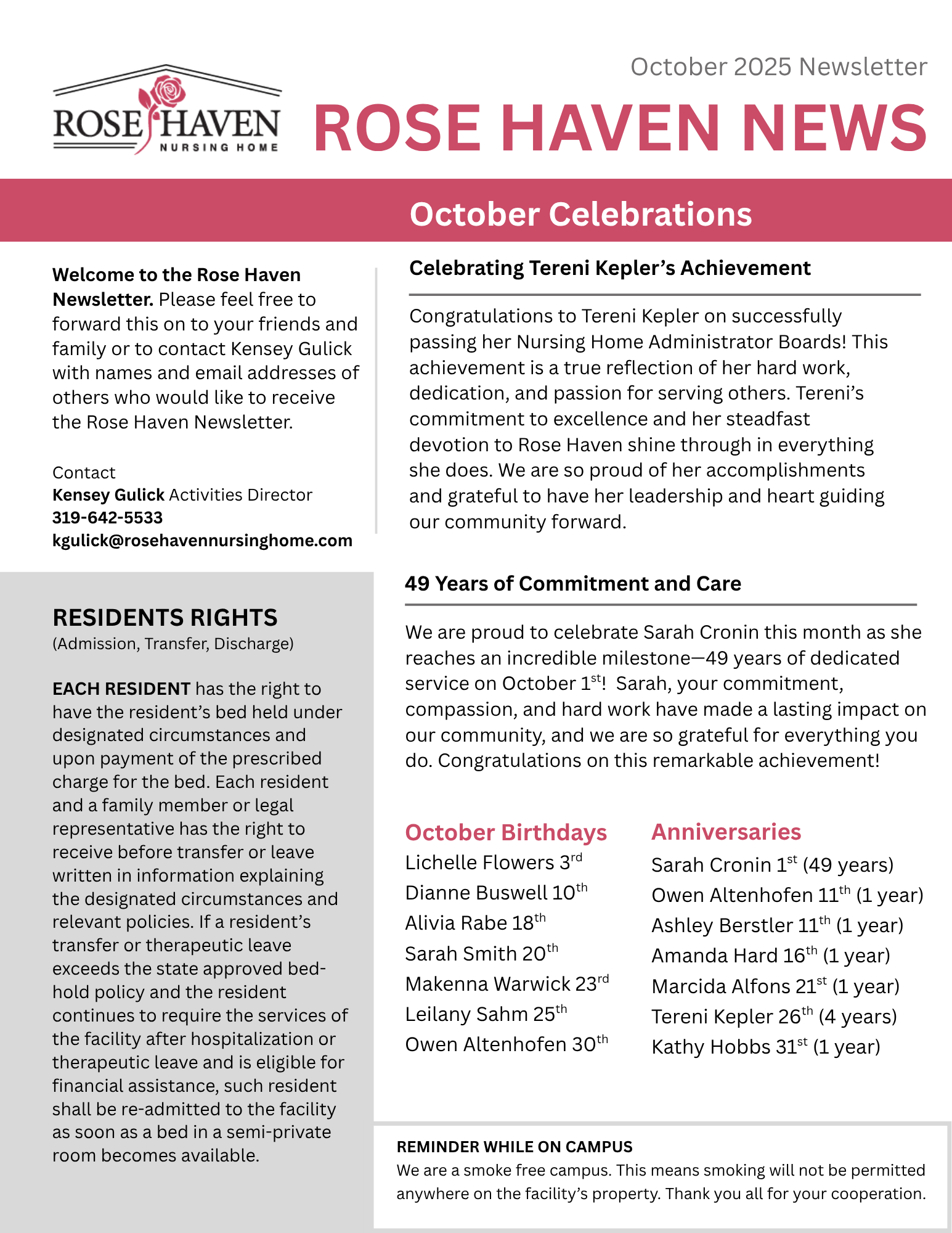 As always, thank you to our residents, families, and staff for making Rose Haven such a special place to live and work. Here’s to a cozy, joyful October filled with care, community, and connection.